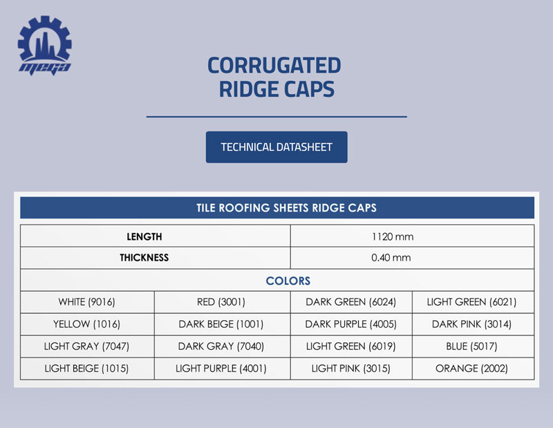 Corrugated ridge caps from Mega Steel Company designed to protect roof joints, prevent leaks and support long-lasting roofing performance in Qatar.